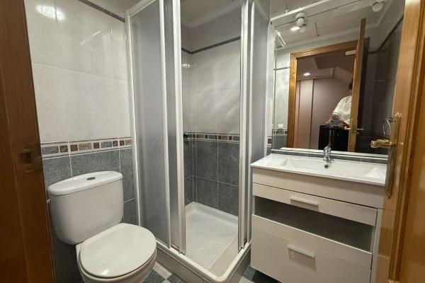 On the ground floor, the property offers a bright living and dining area, a fully equipped independent kitchen with plenty of storage, one bedroom, and a full bathroom with shower.
