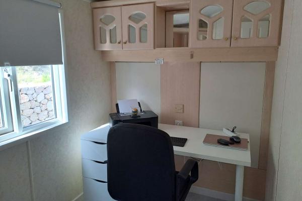 This is a spacious park home with a large open plan lounge area with a fitted kitchen and another room, currently used as...