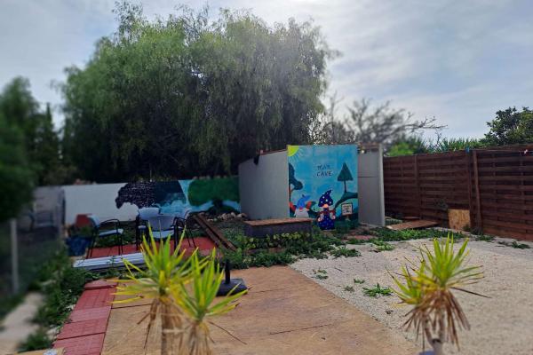 Een opvallend kenmerk van het terrein is de royale privétuin van ongeveer 300 m², aangevuld met zonnige terrassen die ideaal zijn voor buitenleven. De tuin kan volledig worden aangelegd en versierd om aan de wensen van de nieuwe huurders te voldoen, waarbij de verantwoordelijkheid hiervoor bij de huurders ligt.